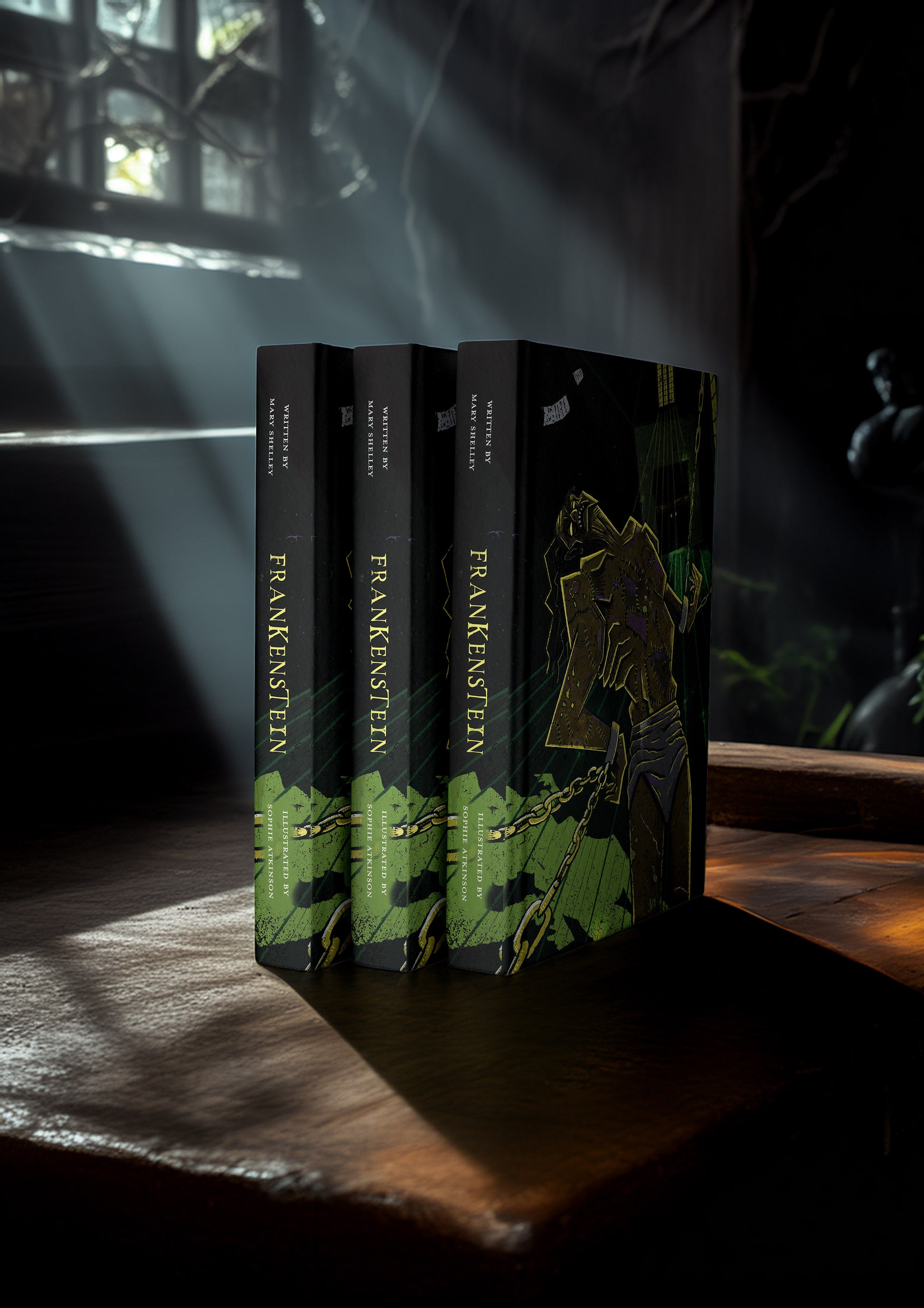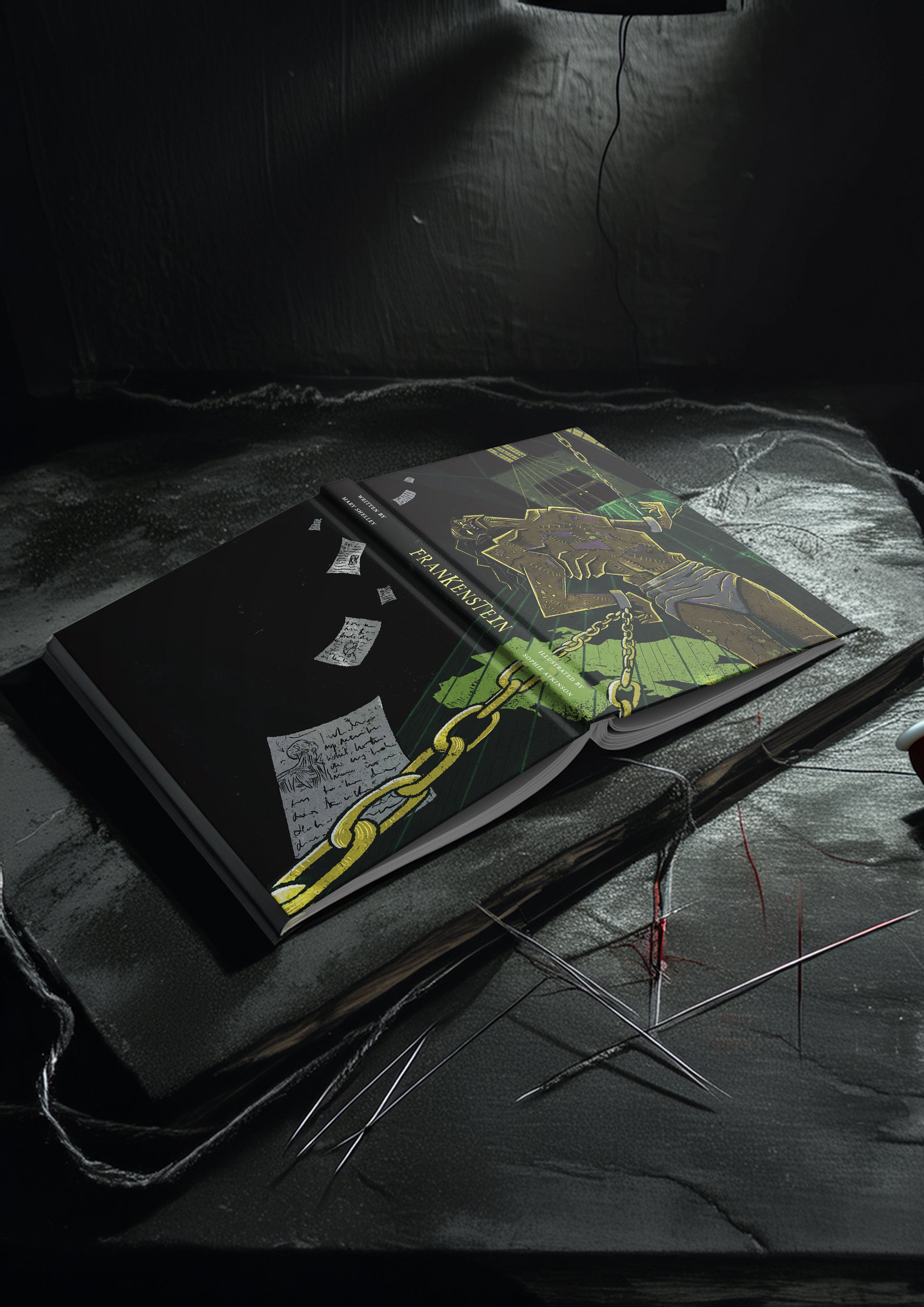 This first edition is the culmination of my Master’s degree final project, created to push the boundaries of narrative illustration. From the cover design to the layout and illustrations, every element of the book has been carefully designed and produced by me to honour the dark beauty of Shelley’s writing.